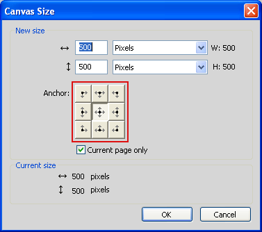 what manner does the canvas size change when the anchor buttons appear as they